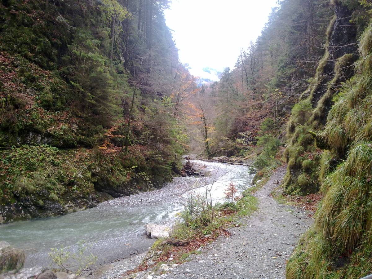 Von der Bahnstation Weissenburg führt ein breiter Weg in angenehmem Aufstieg zum Standort des ehemaligen Hotels Weissenburgbad. Ein Pavillon und eine Reihe von Kastanienbäumen zeugen vom einstigen herrschaftlichen Kurbetrieb an dieser Stätte. Auf schmalem Pfad gelangt man in der sich rasch verengenden Schlucht zu den Überresten des noch älteren Vorläuferhotels.
