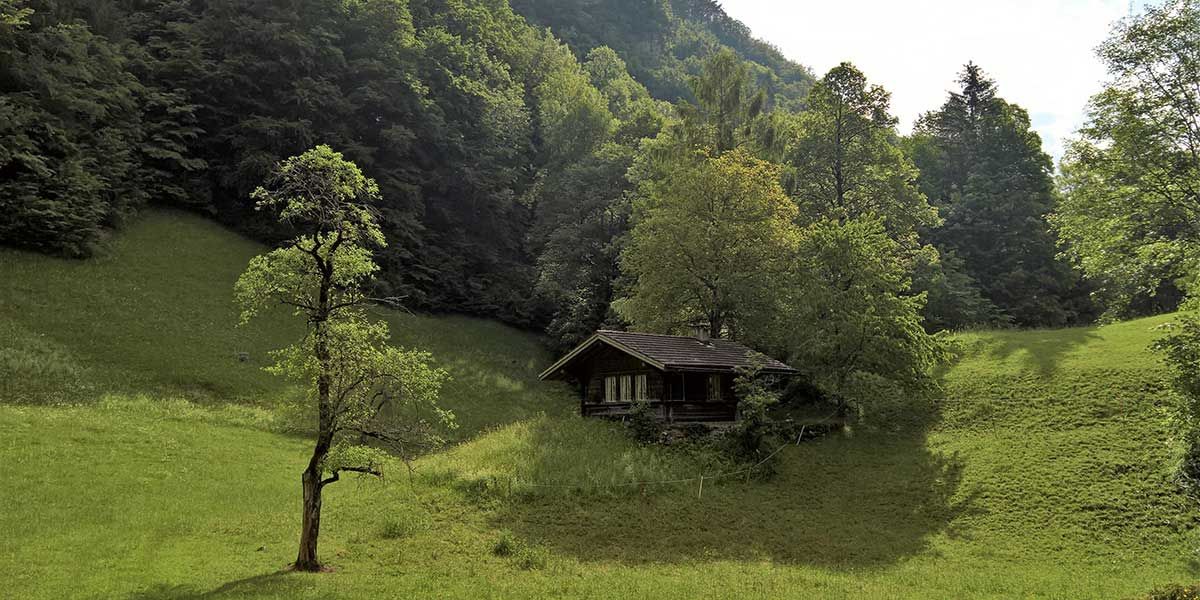 Vom Bahnhof Meiringen geht es in direkter Linie an den nördlichen Dorfrand. Beim ehemaligen Amthaus zweigt der Wanderweg Richtung Hausen links ab. Zwischen Siedlungsgebiet und Wald kommt man auf dem Kiesweg zügig in westlicher Richtung voran. Ausserhalb des Eyelti-Quartiers, das zum Meiringer Dorfteil Hausen gehört, gelangt man zum Hüsenbach. Schon bald schwenkt die Wanderroute auf ein pfeifengerades und entsprechend langweiliges Strässchen ein, führt aber immerhin weiter dem Gewässer entlang.