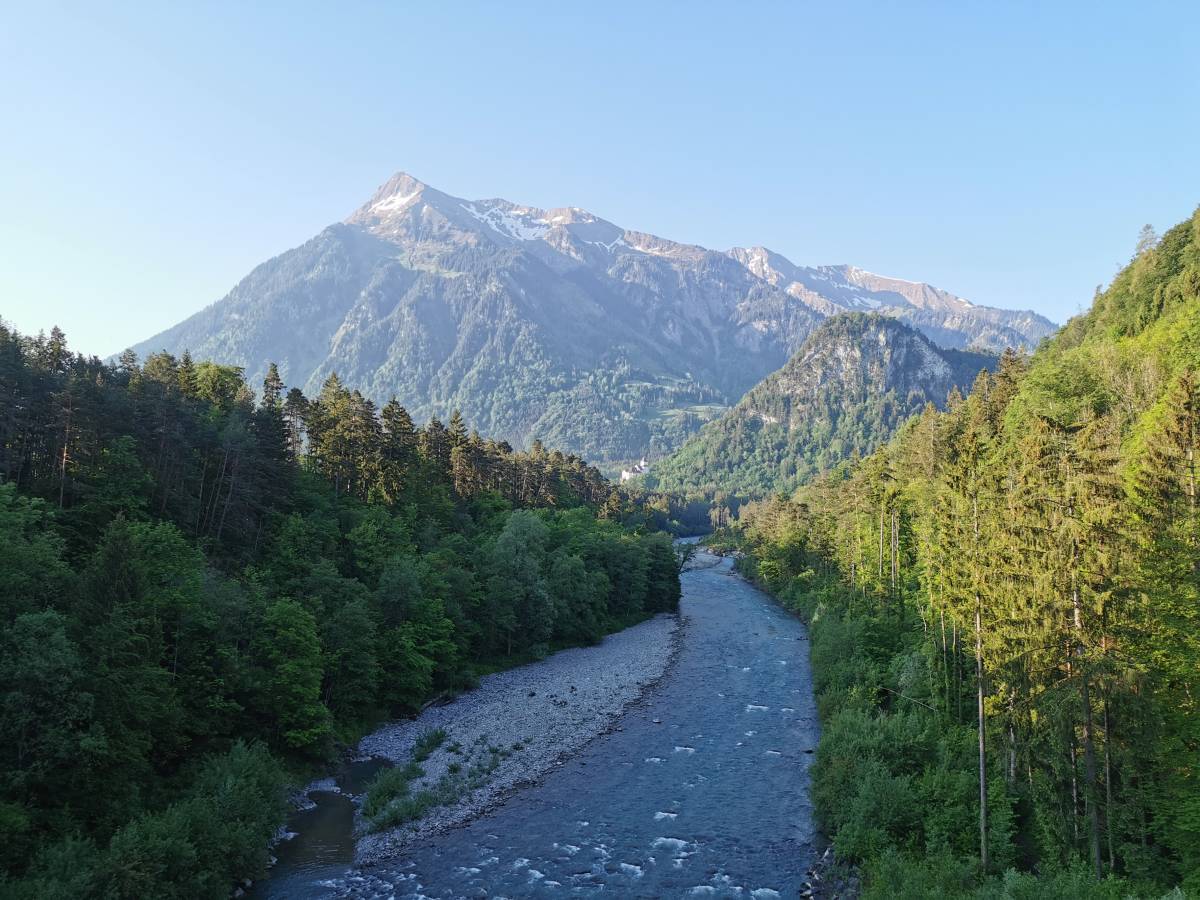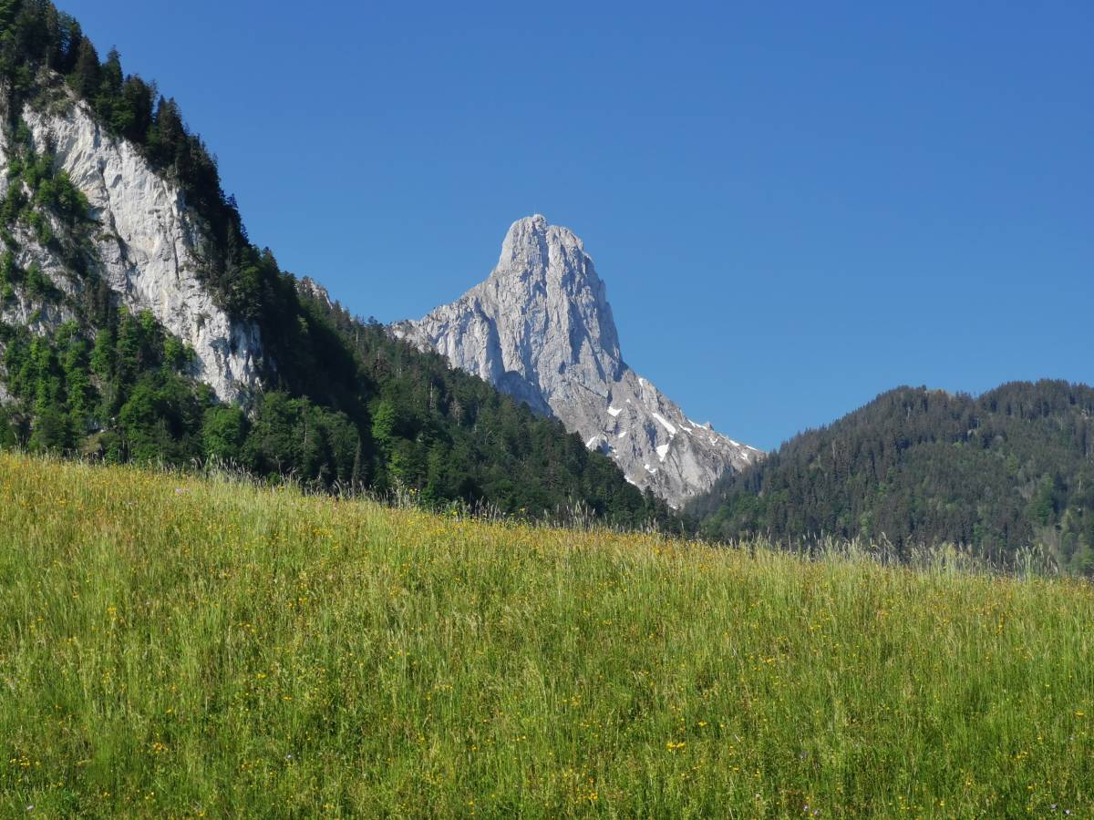 Nach einer weiteren Auenwaldpassage steigt man zum Plateau von Wimmis auf. Bei schöner Sicht zur eindrücklichen Pyramide des Niesen gelangt man an den Dorfrand und zur Bahnstation.