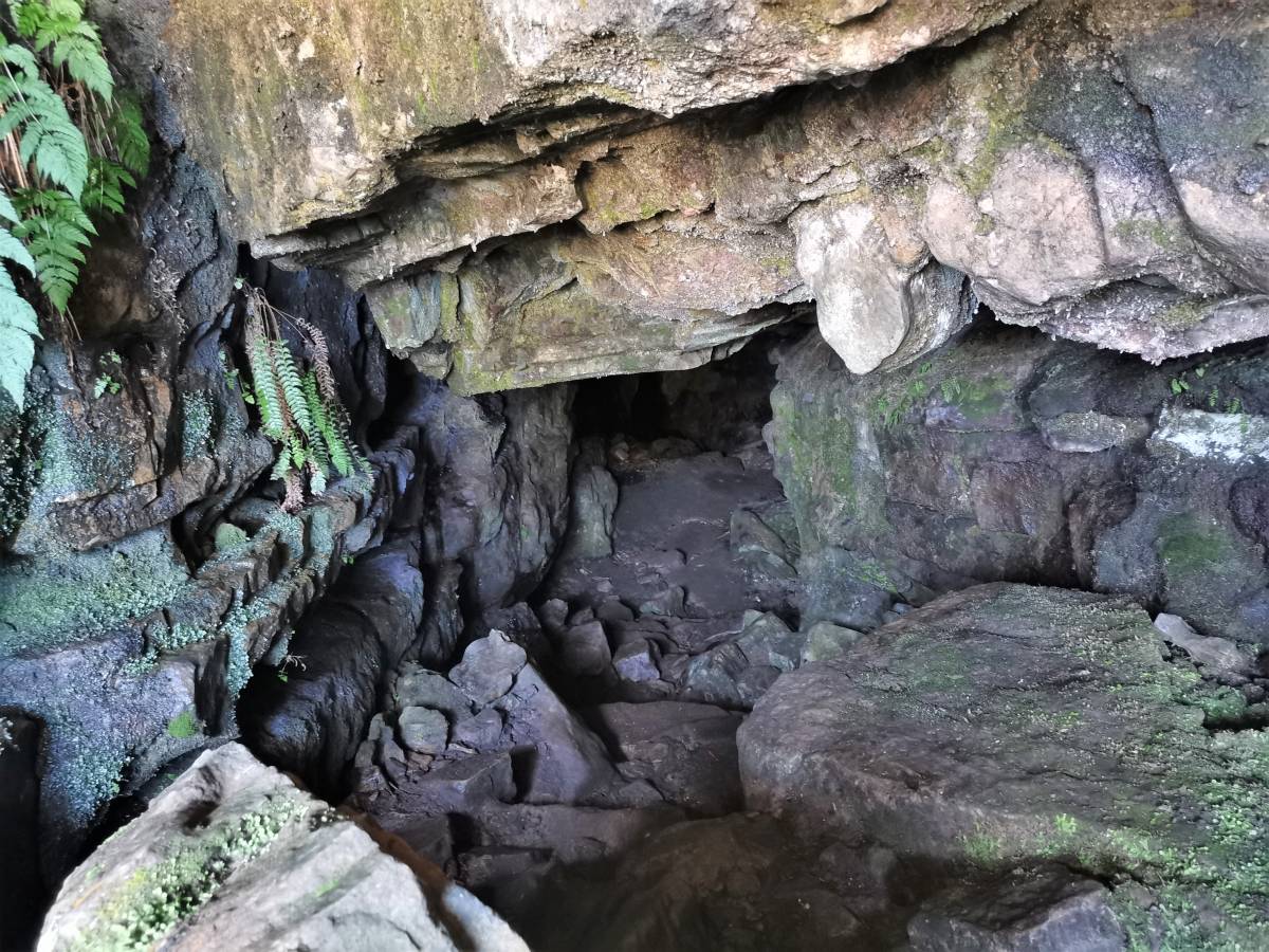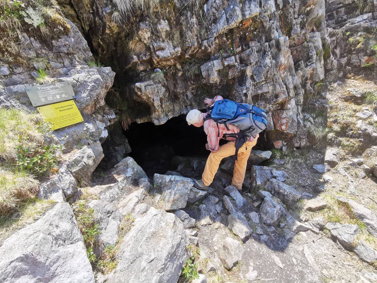 Immer tiefer taucht man in diese mystische Landschaft ein. Nach halbstündigem Aufstieg erreicht man eine kleine Senke, an deren Rand eine Tafel auf den Eingang zum Tropfloch hinweist. Die Tropfsteinhöhle, wie sie auch genannt wird, ist eine frei zugängliche Höhle, die in einer rund 20 Meter mächtigen Sandsteinschicht liegt. Der Eingang ist leicht abwärtsgeneigt, dahinter öffnet sich ein System von mehreren Längsgängen, die untereinander mit Quergängen verbunden sind.