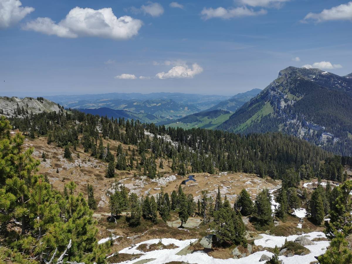 Über das Hinter Seefeld gelangt man in sanftem Abstieg zum Grünenbergpass, von dort auf einer teilweise asphaltierten Strasse über Kaltenbach und Blossmoos zurück nach Habkern.