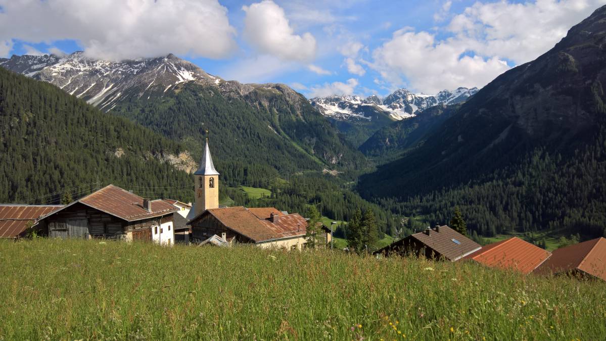 Auf einer sonnigen Hochebene über dem Albulatal liegt Latsch. Vom Dörfchen führt ein Rundgang der Hangkante entlang: Der Panoramaweg bietet eine eindrückliche Aussicht. Kaum Hartbelag ausserhalb des Siedlungsgebiets.
