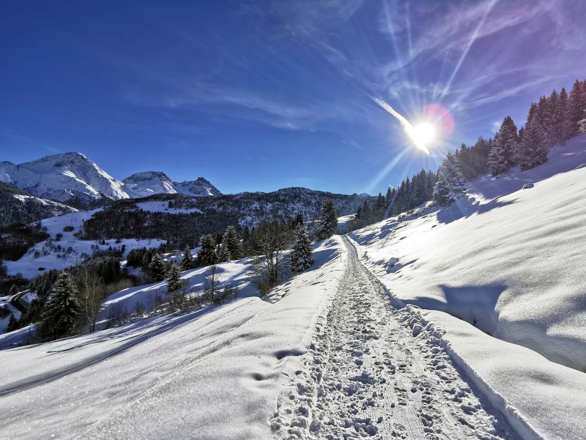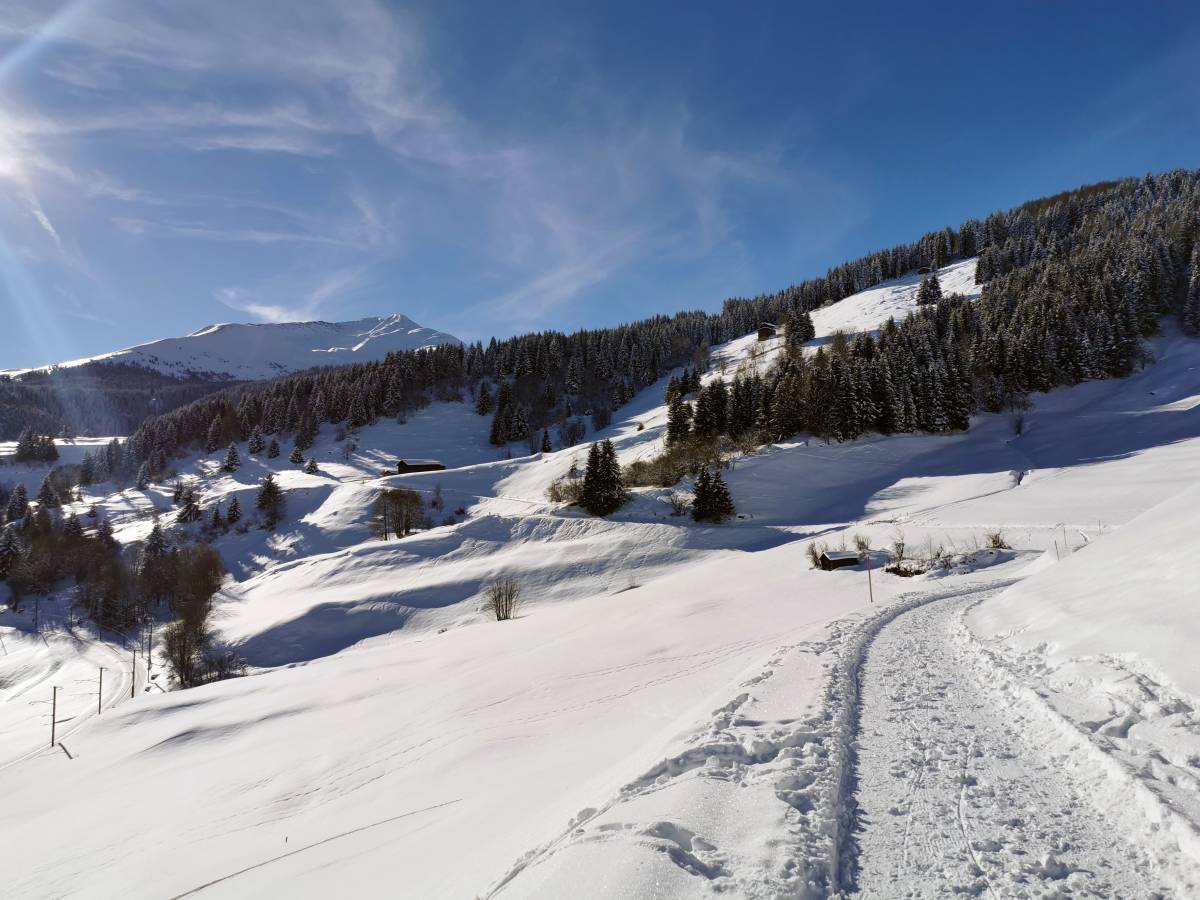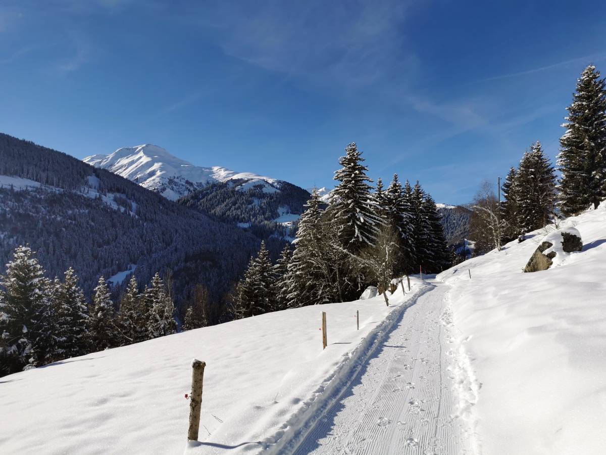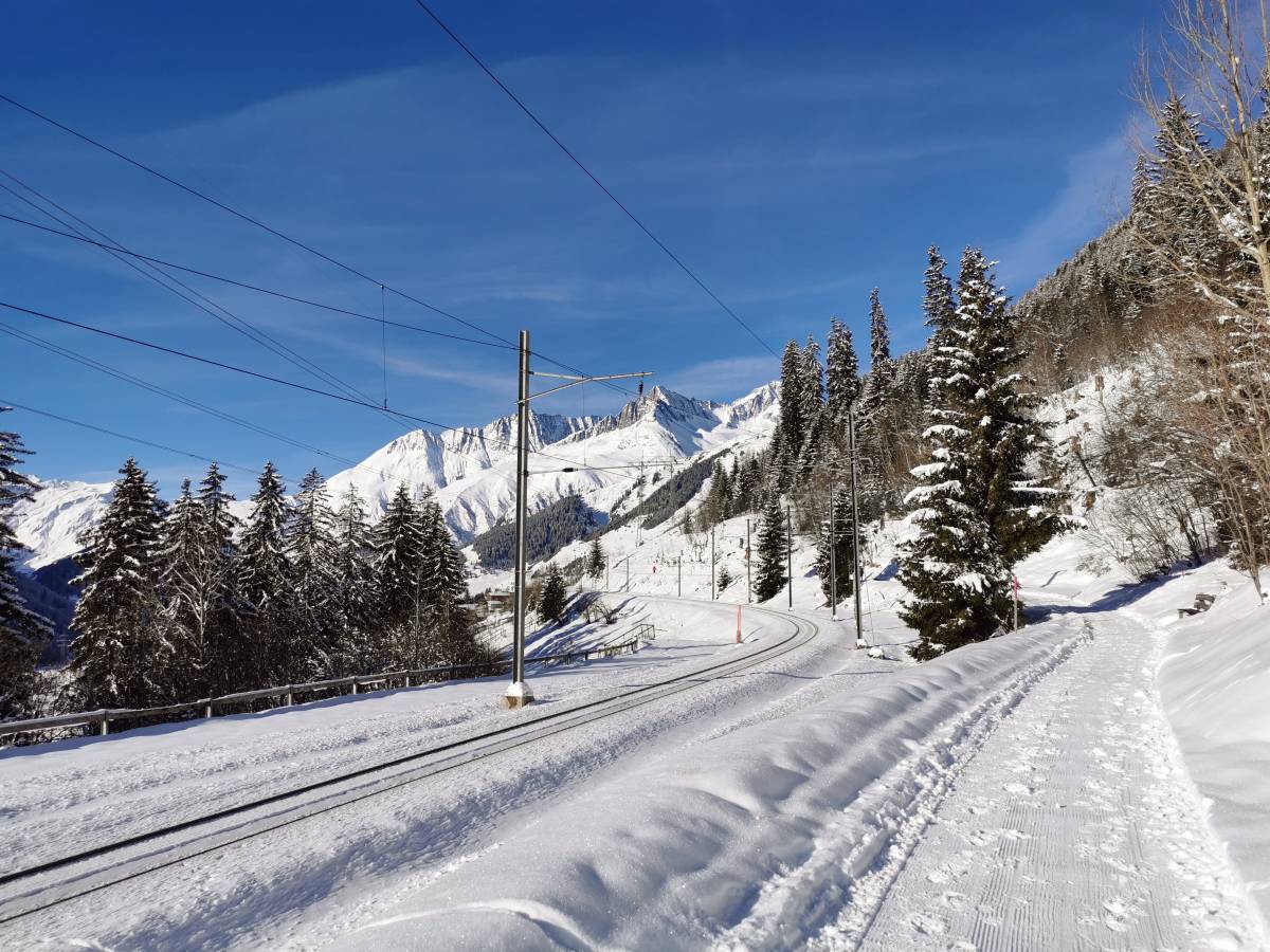 Täler, die in Ost-West-Richtung verlaufen, haben eine etwas unvorteilhafte Eigenheit: Im Winter steht die Sonne so niedrig am Himmel, dass ihre Strahlen den Talboden manchmal nur kurz und knapp oder sogar überhaupt nicht erreichen. So liegt etwa das Dorf Bristen im Maderanertal während vollen fünf Monaten im Schatten. In einer etwas privilegierteren Situation ist das ähnlich ausgerichtete nahe Tujetsch. Dort sind die Berge im Süden zwar nicht weniger hoch, aber weiter entfernt, so dass die Sonne auch im Winter über ihre Rücken zu steigen vermag. Von einer besonders günstigen Besonnung profitiert der Hang auf der Nordseite des Vorderrheins. Hier verläuft auch der Winterwanderweg, der Sedrun mit Disentis verbindet. Die Route gilt nicht zuletzt wegen der geschützten Lage als Klassiker der Region.