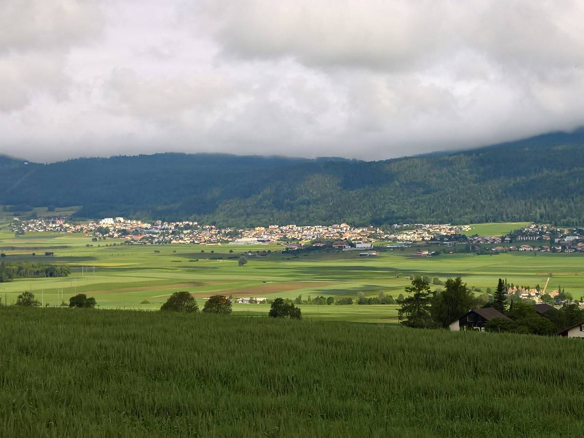 Etwas mehr als eine halbe Stunde lang geht es nun aufwärts – nur mässig aufsteigend zwar, aber annähernd schnurgerade und wegen der Bäume ohne Aussicht, also insgesamt etwas monoton. Das ändert sich beim Erreichen der Strassen-/Wegkreuzung Chaumont de Bosset. Jetzt verlässt man den Wald und durchstreift typische Juralandschaft: Weiden, Hecken und Baumgruppen formen ein abwechslungsreiches Mosaik.