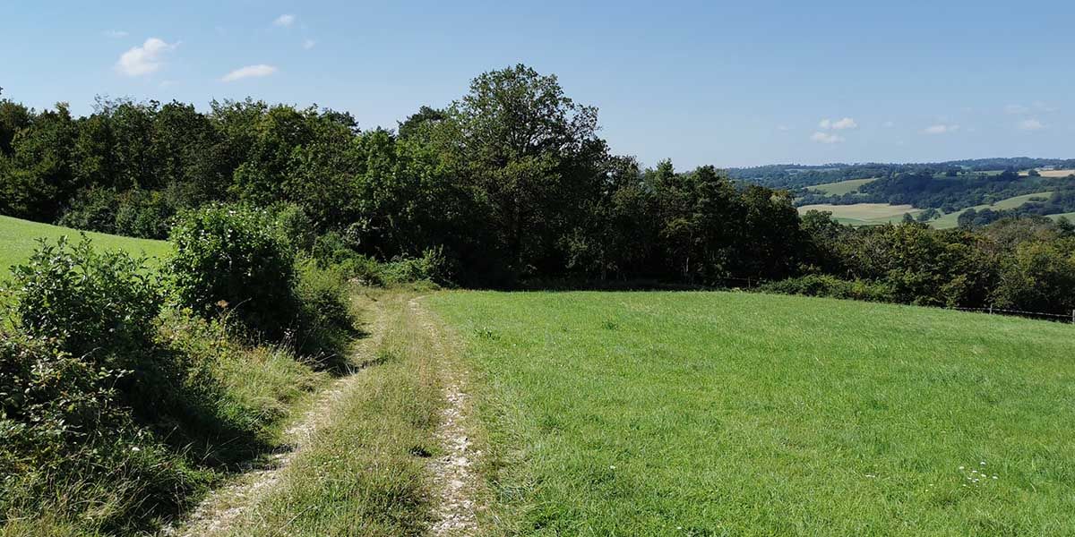 Von Damvant, dem westlichsten Dorf der Haute-Ajoie, führt ein Flursträsschen an Wiesen mit weidenden Kühen und Pferden vorüber in den Wald und sanft ansteigend zu den Grottes de Réclère.