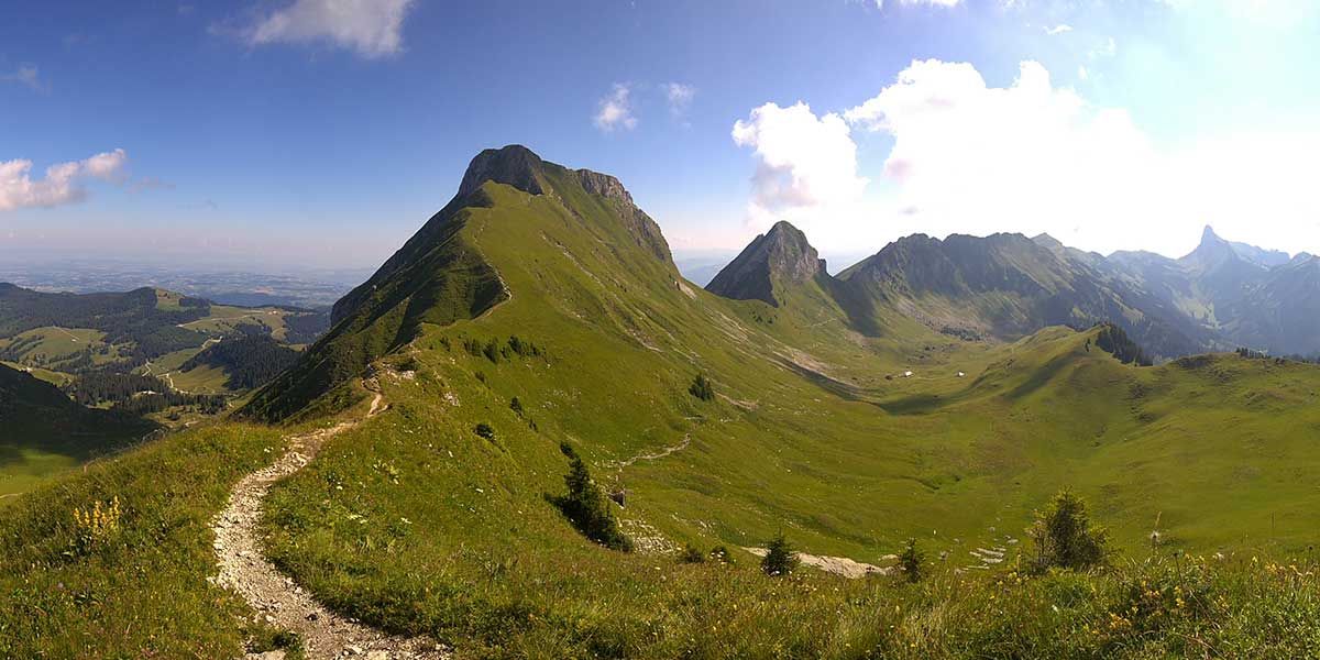 Im Übergangsbereich von Voralpen und Alpen liegt die Bergwanderung auf den Gantrisch. Entsprechend kontrastreich ist die Landschaft und die Aussicht: Sie reicht vom Mittelland bis zu den Alpengipfeln. Die letzten 50 Höhenmeter bis zum Gipfel sind ausgesetzt; hier ist die Strecke mit einem Stahlseil ausgestattet. Durchwegs Naturbelag.
