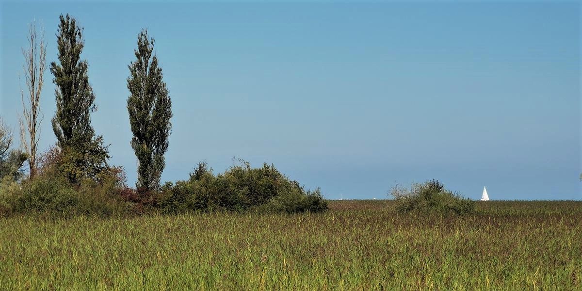 Am Rheinspitz mündet der alte Rhein in den Bodensee. Dort liegt auch die Schiffländte Altenrhein. Von hier an verläuft die Wanderung auf dem Hochwasserschutzdamm entlang des Sees. Zu diesem Zweck hat man eingangs einen marginalen «Aufstieg» von etwa anderthalb Metern vorzunehmen. Er ist natürlich kaum wahrnehmbar, spielt aber eine entscheidende Rolle. Der Damm liegt nämlich mehrere hundert Meter vom eigentlichen Seeufer entfernt, die leicht erhöhte Lage erlaubt aber eine ausgezeichnete Sicht ins grossflächige Ried, das sich bis zur Wasserlinie ausbreitet.