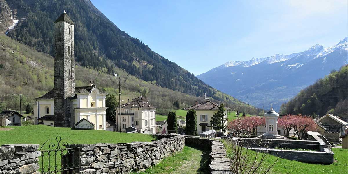 Viel Sonne hat man jedenfalls auf dem Sentiero basso. Der Talweg führt in Olivone zunächst an prächtigen Herrschaftshäusern aus dem 19. Jahrhundert vorbei ins Dorfquartier Chiesa, das nach der Pfarrkirche San Martino benannt ist. Der Glockenturm ist romanischen Ursprungs, im Inneren der Kirche wurden gar Fundstücke aus dem 8. Jahrhundert entdeckt.