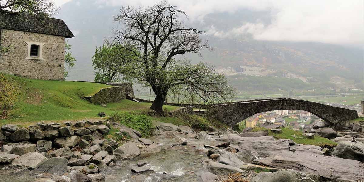 Vom Bahnhof gelangt man der Via Giovannini entlang unter der Gotthard-Bahnlinie hindurch in den Borgo, das alte Stadtzentrum. An leicht erhöhter Lage steht die wenig ansehnliche Pfarrkirche San Carlo. Noch etwas weiter oben sieht man einen weiteren sakralen Bau von ganz anderem Kaliber: Die Kirche San Pietro e Paolo geht in ihrer heutigen Form auf das 11. Jahrhundert zurück und gilt als eines der bedeutendsten romanischen Bauwerke der Schweiz. Auf dem Rückweg kommt man an ihr vorbei. Vorerst folgt man einem Strässchen, das in leichtem Anstieg dem Hang entlang Richtung Süden führt. Die Petronilla-Kapelle liegt auf der anderen Seite der Brücke über den Froda-Bach.