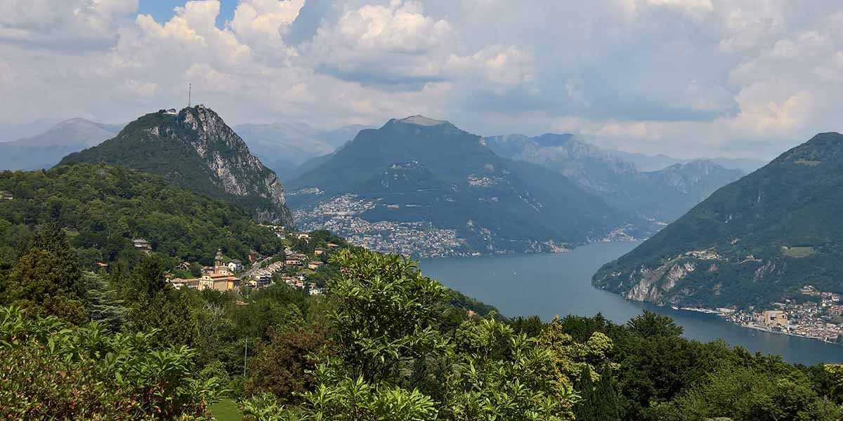 Unterhalb des Berggasthauses verlässt der Wanderweg das Weideland und mündet erneut in Waldgebiet. Von nun an geht es praktisch lückenlos auf Steintreppen abwärts. Schon bald rückt der Kirchturm von Morcote ins Blickfeld. Der Abstieg vor der prachtvollen Kulisse ist ebenso malerisch wie spektakulär. Mehr als 400 Stufen zählt allein der Schlussspurt von der im Renaissancestil erbauten, später barockisierten Pfarrkirche Santa Maria del Sasso an den See hinunter.