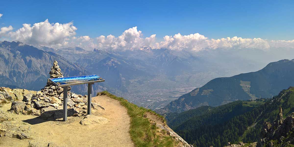 Die Pierre Avoi ist ein formidabler Aussichtsberg im Unterwallis. Der Weg dorthin bietet alles, was sich Wanderer im Wallis erhoffen dürfen: Alpwiesen voller Blüten, alte Bewässerungsgräben, kunstvoll sich ins Gelände schmiegende Bergwege, einen eindrücklichen Passübergang und ein grandioses Gipfelpanorama. Ausserhalb des Siedlungsgebiets durchwegs Naturbelag.
