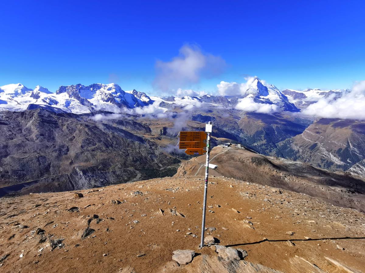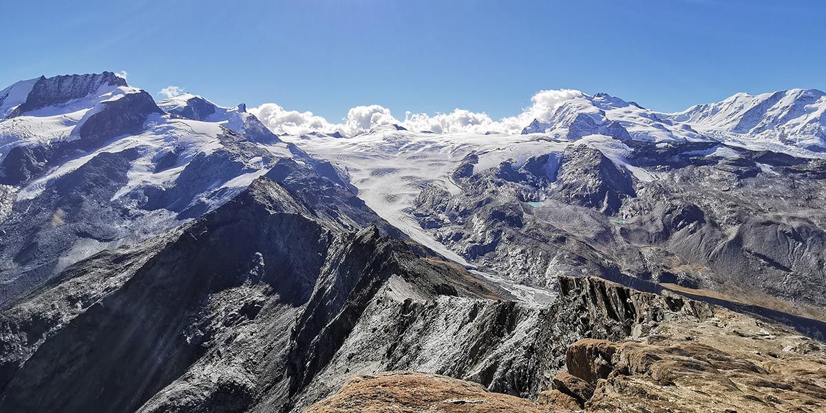 Der Lohn für die allfälligen Mühen des Aufstiegs ist reich: Das Oberrothorn bietet eine fulminante Rundsicht auf rund zwei Dutzend Viertausender vom Matterhorn bis zur Dufourspitze, dem höchsten Punkt der Schweiz. Anders als an vielen Aussichtspunkten in den Alpen zeigen sich die vergletscherten Felsriesen hier nicht aus kühler Distanz, sondern wirken zum Greifen nah.