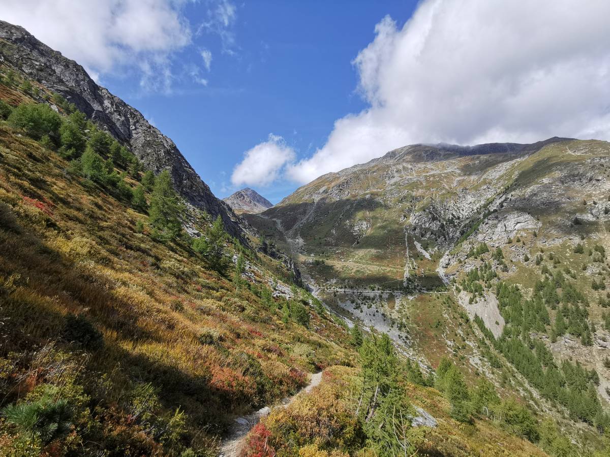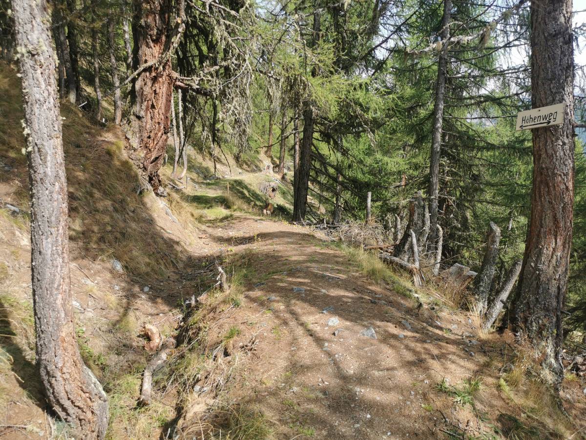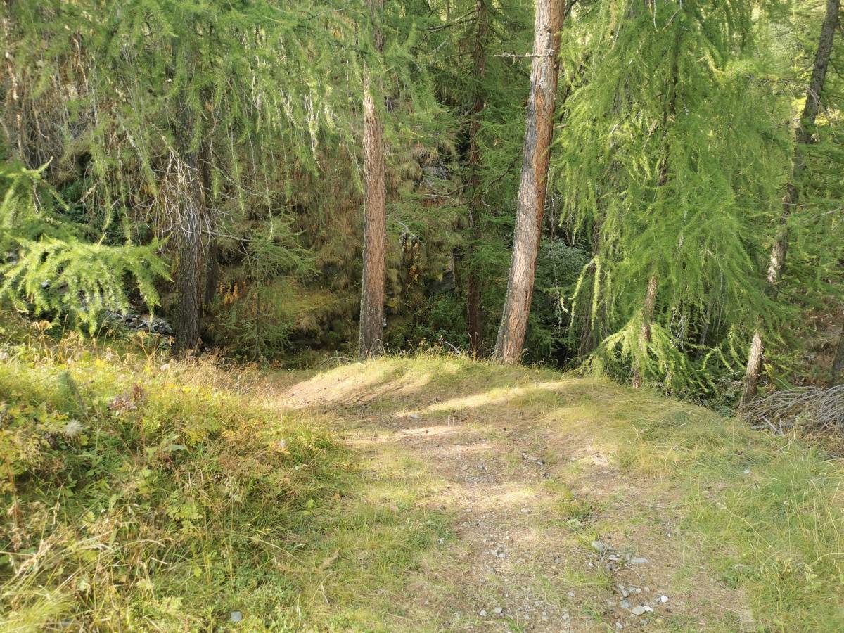 Der Aufstieg wird danach im Wald fortgesetzt. Durch lichte Lärchenbestände gelangt man via Wolftole nach Obri Äbi und damit zum höchsten Punkt der Tour. Nun senkt sich der Bergweg ins weite Tal des Emdbachs. Während beide Talflanken bewaldet sind, verraten die baumlosen Hänge beidseits des Bachs, dass hier im Winter regelmässig mächtige Lawinen niedergehen.